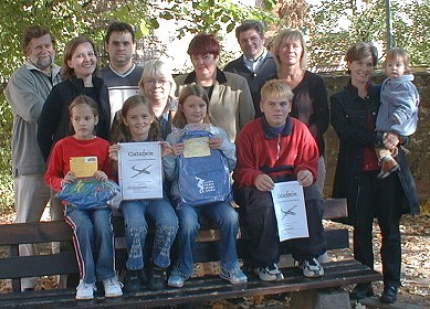 Vom Eberbacher Schulhof bis nach Italien V.l. Stefan Frey (Konrektor Förderschule), Lara Münch, Andrea Frühwald, Sascha Hepp (Elternbeiratsvorsitzender), Franziska Lange, Doris Gerbracht, Jule Mertes, Gabriele Kellner, Manfred König (Schulleiter Grundschule), Robin Christian, Claudia Rechnitzer-Ehrler und Anja Zimmermann mit Tochter Lara (Foto:C.Richter)(hr) (cr) Beim Schulfest der Dr.Weiß-Grund- und Förderschule am 12.Juli dieses Jahres (wir berichteten) fand auch ein Luftballonwettbewerb statt. 300 Ballons wurden gestartet und immerhin 42 Absenderkarten kamen nach Eberbach zurück. Gestern fand die Preisverleihung für die weitesten Flugstrecken statt. Den ersten Preis erhielt Franziska Lange. Ihr Ballon flog bis nach Italien. Den zweiten Preis erhielt Robin Christian. Die beiden Kinder gewannen je einen Freiflug vom Segelclub Eberbach, der von der Firma EP:Gerbracht bzw. von Fluglehrer Christoph Stiller gesponsert wurde. Lara Zimmermann, die jüngste Gewinnerin, gewann für einen Luftweg von 329 km eine Maglite-Taschenlampe. Jule Mertes erhielt einen Rucksack für 283 km und Lara Münch eine Gürteltasche für 281 km.
