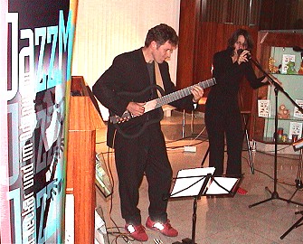 Maxi-Jazz in Mini-Besetzung (Foto:Richter)(hr) Mit faszinierenden Jazz-Standards und Improvisationen begeisterten Jule Unterspann und Bernhard Sperrfechter gestern Abend ihr Publikum in der Schalterhalle der Volksbank Neckartal in Eberbach. Virtuoses Gitarrenspiel und eine äußerst facettenreiche Stimme waren die Zutaten zu dem rhythmisch und harmonisch perfekten Jazz-Cocktail, der mit dezent eingesetzten digitalen Soundtricks für Aha-Effekte sorgte. Das Duo bildete den Auftakt zu den diesjährigen Jazz-Tagen unter dem Motto "Jazz Me am Neckar und im Odenwald".