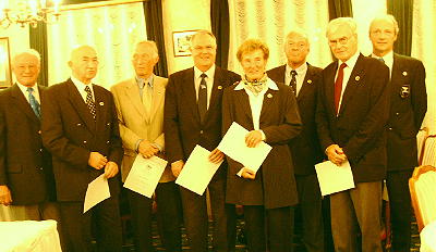 Goldene Ehrennadel des Deutschen Ruderverbandes verliehen V.l.n.r.:Robert Moray, Rudolf Münch, Helmut Scheuenpflug, Peter Mayer, Inge Spohr, Dieter Empacher, Helmut Empacher und Vorsitzender Gunter Mayer. (Foto:Wartner)