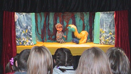Puppentheater zeigte gewaltfreien Umgang mit Konflikten (Foto:Richter)(hr) Rund 300 Kinder und Erwachsene besuchten vorgestern die Vorstellungen von Hanne Heinstein mit ihrem Heidelberger Marionettentheaters "Troll Toll" im Rahmen des Apfeltags beim Polizeirevier Eberbach.