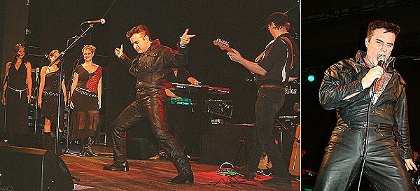 Ein atemberaubend authentischer Elvis-Interpret (Fotos:Wörner)(tw) Etwa 150 Fans, die zum Teil weite Anfahrtswege in Kauf genommen hatten, waren am Samstagabend in der Stadthalle, um "The King" zu sehen. Bei der zweieinhalbstündigen Bühnenshow mit seiner Band "All The Kingsmen" kamen sicher dem einen oder anderen Zuschauer Zweifel, ob nicht doch Elvis dort oben auf der Bühne stand. Er selbst sieht sich ja als eine Art Wiedergeburt des "King of Rock´n´Roll". Ebenso mussten sicher einige bei den Interpretationen von Nicht-Elvis-Songs kurz überlegen ob "Sympathy for the devil" überhaupt von den Rolling Stones oder "Crazy little thing called love" von Queen und "No woman no cry" am Ende gar nicht von Bob Marley sondern von Elvis Presley stammen.