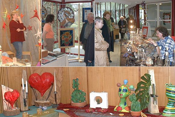 Kreatives nicht nur für die Weihnachtszeit (Fotos:C.Richter)(hr) (cr) Mit über 84 Ausstellern aus dem ganzen Bundesgebiet findet heute und morgen der 14. Kreativmarkt in der Stadthalle in Eberbach statt. Renate Lipski vom veranstaltenden Bürger- und Heimatverein ist dankbar über die Flexibilität der einzelnen Aussteller, die teilweise Tische und Licht selbst mitbringen, um für das richtige Outfit dieser Veranstaltung zu sorgen. Das Konzept geht seit Jahren auf: im letzten Jahr kamen fast 3000 Besucher zu dem über die Grenzen Eberbachs hinaus bekannten Markt. "Vielleicht schaffen wir mehr als 3000 in diesem Jahr", wünscht sich Lipski. Nicht nur vorweihnachtliche Produkte werden angeboten, auch ausgefallene "Stücke" für das ganze Jahr kann man erwerben - und natürlich Ideen zum Selbstgestalten mit nach Hause nehmen.