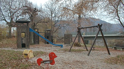 Stadt investiert in Spielplätze Die größeren Geräte auf dem Spielplatz an der Neckarbrücke werden erneuert. (Foto:C.Richter)(hr) Die größeren Spielgeräte auf dem Spielplatz an der Neckarbrücke sind rund 30 Jahre alt und entsprechen nicht mehr den heutigen Sicherheitsvorschriften. Daher beschloss der Bauausschuss des Eberbacher Gemeinderats in seiner letzten Sitzung am Donnerstag die Erneuerung der vorhandenen Spieltürme, der Holzeisenbahn und des Sandkastens. Ansonsten soll der Spielplatz in seinem derzeitigen Charakter unverändert bleiben. Er gehört neben der Anlage im Heuacker zu der mittleren Kategorie (Spielplätze mit gehobener Ausstattung) im städtischen Spielplatzkonzept. Dieses Konzept führt zudem in der höchsten Kategorie zwei Schwerpunktplätze auf (Burghälde und Akazienstraße) sowie insgesamt 19 weitere Spielplätze der niedrigsten Kategorie mit einfacher Grundausstattung im Stadtgebiet und den Ortsteilen.