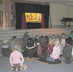 Konflikte gewaltfrei lösen (Foto:privat)(bro) (gl) Das Heidelberger Marionettentheater "TrollToll" unter der Leitung von Hanne Heinstein, die mit Geschicklichkeit und Perfektion ihre Marionetten tanzen und sprechen ließ, verzauberte am Montag die Aula der Haupt-und Werkrealschule in ein verstecktes Troll-Dorf mitten im Odenwald. Haudidudi lebt dort mit seiner Schwester Trine, der Raupe Trullala, dem Raben Oskar und vielen anderen Tieren aus dem Wald. Haudidudi liebt es, andere zu ärgern, Streiche auszuhecken und wenn er glaubt, dass es sein muss, schlägt er auch schon mal zu. Im Laufe der Geschichte und mit Hilfe eines Traums erkennt er, dass Gewalt der Weg des Verlustes ist. Der coole Fuchs Fuzzy und Haudidudi lernen von da an gemeinsam den niederlagenlosen Umgang mit anderen.