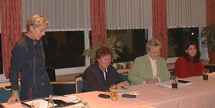 Frauen zeigen kaum Interesse an Kommunalpolitik Charlotte Schneideweind-Hartnagel mit den amtierenden Stadträtinnen Christa Wernz, Ulrike Kraus und Vanessa Frey. (Foto:C.Richter)(hr) (cr) Im Auftrag der amtierenden Stadträtinnen lud gestern Charlotte Schneidewind-Hartnagel zu einer parteiübergreifenden Veranstaltung zum Thema "Frauen im Gemeinderat" ein. Schneidewind-Hartnagel erläuterte die Situation im Eberbacher Gemeinderat: Von 22 Mitgliedern sitzen zur Zeit lediglich drei Frauen in diesem Gremium. Vanessa Frey (AGL), Ulrike Kraus (CDU) und Christa Wernz (SPD) haben diese Mini-Quote zum Anlass genommen, Frauen zur Übernahme politischer Ämter und Funktionen zu ermutigen. Frustriert waren die Rätinnen allerdings, als sie die Zahl der Interessierten sahen: Nicht einmal ein halbes Dutzend Frauen fanden den Weg zur Veranstaltung. Die Politikerinnen fragen sich nun, warum so wenig Informationsbedarf bei Frauen zu Kommunalpolitik und frauen- und familienpolitischen Themen besteht, wo doch immerhin 53 Prozent der Eberbacher Einwohner weiblich sind.