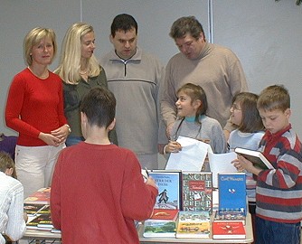 Spende von Elternbeirat für Klassenbibliothek - Schule stockt auf V.l. Konrektorin Claudia Rechnitzer-Ehrler, Christiane Schulz und Sascha Hepp vom Elternbeirat sowie Schulleiter Manfred König mit Kindern am Büchertisch. (Foto:C.Richter)(hr) Der Elternbeirat der Dr-Weiß-Grundschule ermöglicht allen 15 Klassen, Kinderbücher im Gesamtwert von 1500 Euro einzukaufen. Aus diesem Grund fand gestern an der Schule eine Bücherausstellung statt. Die Elternvertreter wollen mit der Spende aus dem Erlös verschiedener Schulfeste den Kindern das Lesen näher bringen. "Die Kinder können lernen, dass Lesen nicht nur Schule ist", sagt die stellvertretende Elternbeiratsvorsitzende Christiane Schulz. Viele Schüler seien völlig überrascht, dass Lesen auch Spaß machen kann. Gerade im Hinblick auf den neuen Bildungsplan sei Lesen sehr wichtig, sind sich Schulleitung und Elternvertreter einig .In Zusammenarbeit mit Konrektorin Claudia Rechnitzer-Ehrler bestand gestern für alle Kinder der Dr-Weiß-Grundschule die Möglichkeit, in Ruhe in den Büchern zu blättern. Die Schülerinnen und Schüler werden in Zusammenarbeit mit Lehrern und Elternvertretern Bücher für ihre Klassenzimmer aussuchen, die dann auch mal für zuhause ausgeliehen werden können.