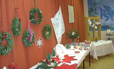 Verkauf von Handarbeiten für karitative Zwecke (Foto:C.Richter)(hr) (cr) Der Handarbeitskreis der katholischen Frauengemeinschaft St. Johannes Nepomuk lädt am morgigen Samstag von 10 bis 19 Uhr und am Sonntag von 10 bis 18 Uhr die Bevölkerung ins katholische Pfarrheim ein. Neun Damen haben das ganze Jahr über Handarbeiten hergestellt und gebastelt, um diese Dinge am ersten Adventwochenende zu verkaufen. Im letzten Jahr konnten aus diesem Verkauf etwa 3000 Euro für karitative Zwecke verteilt werden. Auch in diesem Jahr gibt es wieder Kaffee, selbstgebackenen Kuchen und Weihnachtsgebäck.