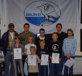 (bro) Im Rahmen der Kinder und Jugendweihnachtsfeier am 1. Adventsamstag im Bürgersaal in Waldbrunn –OD wurden die Sieger der am 23. November im Kurzentrum Waldbrunn stattgefundenen Vereinsmeisterschaften geehrt. Die Kinder, Jungendlichen und Senioren zeigten dort, unter Anfeuerung durch die Eltern, Großeltern und Geschwistern, was das ganze Jahr in den wöchentlichen Übungsabenden erlernt wurde. Jeden Montag werden von den Ausbildern der DLRG Waldbrunn ca. 100 Kinder im Hallenbad des Kurzentrums Waldbrunn in sechs Altergruppen von Nichtschwimmern zu Rettungsschwimmern ausgebildet. Mit ca. 60 startenden Vereinsmitgliedern war ein großer Zuspruch zu verzeichnen, und es wurden beachtlich gute Ergebnisse erzielt.