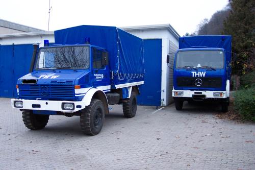 Neue Fachgruppe für das Technische Hilfswerk Die beiden neuen Fahrzeuge: der Unimog (l.) und der LKW mit Ladebordwand. (Foto:privat)(bm) Der Ortsverband Eberbach des Technischen Hilfswerks verfügt seit dem 1. Dezember über eine neue Fachgruppe. Nach bundesweiten Umstrukturierungsmaßnahmen löst die Fachgruppe "Wasserschaden Pumpen" die bisherige Fachgruppe "Wassergefahren" ab. Die Fachgruppe "Wasserschaden Pumpen" besteht aus insgesamt 12 Helfern. Zu den Aufgaben der neuen Fachgruppe gehören unter anderem das Eindämmen von Gefahren bei Überschwemmungen, Pumparbeiten in größerem Umfang, Abwasserbeseitigung aus Schadensgebieten und die Bekämpfung von eindringendem Schmutzwasser in Kellern, Schutzräumen, Brunnen, Verkehrsanlagen sowie anderen Anlagen, die zur Aufrechterhaltung der Infrastruktur im Schadensfall erforderlich sind. Die Instandsetzung von Abwassersystemen sowie das Sichern und Reparieren von Deichen und Dämmen in Zusammenarbeit mit Hilfskräften anderer Organisationen gehört ebenso zum Leistungsumfang. Auf Auslandseinsätzen wird in erster Linie die Fachgruppe "Trinkwasserversorgung" mit dem Bau von Versorgungsstrecken und der Förderung von Rohwasser unterstützt. Der Transport größerer Mengen Wasser über weite Strecken ist ebenso möglich.