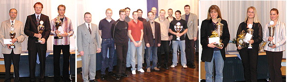 In diesem Jahr wurden insgesamt 143 Ehrungen ausgesprochen, dies waren 50 Prozent mehr als im Vorjahr. Mit dem Ergebnis der Wahl zur Sportlerin des Jahres katapultierten die 38 Stimmberechtigten in diesem Jahr endgültig eine Sportart ins Rampenlicht, die man nicht gerade in Eberbach vermutet. Wie auf den europäischen Schlittenhunderennstrecken, führte in diesem Jahr auch in Eberbach kein Weg an Angelika Merkel vorbei. Mit zwei Europameistertitel aus Polen im Gepäck wurde sie vor Triathletin Laura Schmitz und der Sportschützin Katja Poser zur Sportlerin des Jahre gekürt. Bei den Männern setzte sich wie im Vorjahr Triathlet Timo Bracht durch. Trotz der schlagzeilenträchtigen Disqualifikation beim Saisonhöhepunkt auf Hawaii, kann Bracht eine Reihe hochkarätiger Ergebnisse vorweisen. Unter anderem beim topbesetzten Ironman in Frankreich stand der jetzige Sport- Profi ganz oben auf dem Treppchen. Knapp hinter Bracht platzierte sich Rennruderer Axel Mayer, der Deutsche Meistertitel U-23 im Vierer und Achter sowie die Vizeweltmeisterschaft im Vierer auf dem Konto hat. Mit dem Sportschützen Martin Hildebrand landete auch auf dem dritten Platz ein Deutscher Meister.