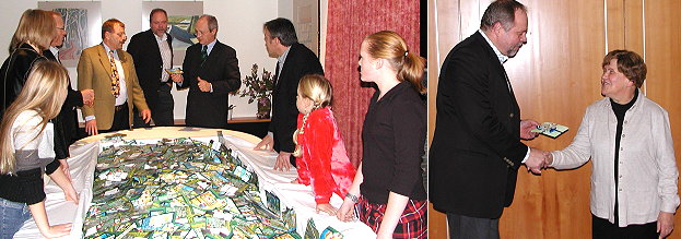 Die Gewinner der EWG- Weihnachtsverlosung 2003 Gunter Mayer prüft das Los der Gewinnerin des ersten Preises und EWG- Vorsitzender Dietrich Müller mit der Gewinnerin des zweiten Preises, Ilse Beichert. (Fotos:Claussen)(jc) Am heutigen Abend wurden die Gewinner der diesjährigen EWG- Weihnachtsverlosung ermittelt. Die beiden Glücksfeen Sofie Weber und Roxana Wieprecht zogen unter Aufsicht von Rechtsanwalt Gunter Mayer die Gewinner aus rund 30.000 Teilnahmekarten. Der Hauptgewinn im Wert von 1000 Euro ging in diesem Jahr nach Neckargerach. Carmen Keil konnte den Preis allerdings am Abend noch nicht persönlich entgegen nehmen, da Sie telefonisch nicht zu erreichen war. Die Gewinne können ab Montag, 22.Dezember im Versicherungsbüro Bauer und Partner am Neuen Markt in Eberbach abgeholt werden.
