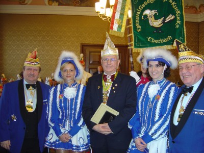 Goldener Löwe mit Brillanten für Günter Raab Das Bild zeigt den neuen Träger des "Goldenen Löwen mit Brillanten" Günter Raab (Mitte) mit Präsidenten der Vereinigung Badisch-Pfälzischer Karnevalvereine Günter Hauck (re.) und dem Viezepräsidenten Hans Weidemann (li.), sowie einer Abordnung der KG Kuckuck (Foto:B.Müller)(bm) Mit einer gelungenen würdevollen Ordensmatinee startete die "Vereinigung Badisch-Pfälzischer Karnevalvereine" heute um 10.31 Uhr im historischen Rathaus zu Speyer mit der Verleihung des "Goldenen Löwen mit Brillanten" in die närrische Kampagne 2004. Insgesamt waren 19 Ordensträger aus dem Verbandsgebiet auszuzeichnen, die immerhin 22 Jahre nach Erhalt des "Goldenen Löwen" nun diese höchste und wohl auch schönste Auszeichnung des Verbandes erhielten. Zu diesem feierlichen Festakt wurde mit Günter Raab auch wieder ein langjähriges Mitglied der KG Kuckuck eingeladen und vom Präsidium der Vereinigung geehrt.
