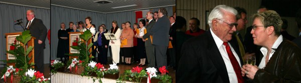 Hoffnungsvoll und optimistisch ins Neue Jahr Bürgermeister Roland Schilling begrüßte zahlreiche Gäste. Der Neujahrsempfang wurde musikalisch vom Kirchenchor Schönbrunn gestaltet. Ehrenbürger und Alt-Bürgermeister Hermann Münz im Gespräch mit "DJ Martina". (Fotos: Böhm) (ub) "Dass wir miteinander reden können, macht uns zu Menschen. Und heute soll das Reden, die Begegnung im Mittelpunkt stehen." Bürgermeister Roland Schilling stimmte seine zahlreichen Gäste aus Politik, Wirtschaft, Behörden und Vereinen beim 16. Neujahrsempfanges in Haag mit einer hoffnungsvollen und optimistischen Rede auf das Neue Jahr ein.