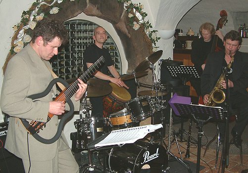 Mardi Jam wird zum Dauerbrenner - Stimmungsvoller Auftakt in die dritte Saison Das "Quartett" Bernhard Sperrfechter (Gitarre), Harald Heinl (Schlagzeug), Martin Simon (Bass) und Matthias Dörsam (Sax) gestern Abend im Badhauskeller. (Foto:Wörner) (tw) (ra) "Ich lade gern mir Gäste ein" heißt es in einem bekannten Lied. Für die Jazz-Reihe "Mardi Jam" wurde dieses Motto tragend. Ein gediegen aufspielendes Quartett um "Anchorman" Bernhard Sperrfechter erfüllte die Gewölbe des Badhauskellers gestern Abend mit Atmosphäre.