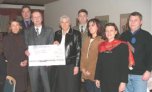 (jc) 10.000 Euro für die Gewerbevereine im Geschäftsgebiet "Serviceland" der Volksbank Neckartal wurden in Form eines symbolischen Schecks am Dienstagabend für das Jahr 2004 übergeben. Marketingleiter Hugo Sablowski betonte, dass die Mittel für dieses Förderprogramm aus eigenen Erträgen der Bank stammten. Anschließend gab er einen kurzen Überblick über die für dieses Jahr geplanten Veranstaltungen. Seit diesem Jahr bestünde außerdem eine Kooperation der Volksbank mit der Volkshochschule. Über das Seminarangebot für den beruflichen Weiterbildungssektor der Abteilung vhs Profirm der VHS Neckargemünd-Eberbach informierte der Leiter der VHS, Erol Weiß. Anschließend hielt VHS-Dozentin Carola Müller einen Kurzvortrag über Bedeutung und Aufbau des Seminars "Beschwerdemanagement".