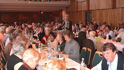 Nach dem gemeinsamen Mittagessen und einer großzügigen Pause, in der genügend Zeit blieb um Gedanken auszutauschen, neue Bekanntschaften zu machen oder alte wieder auffrischen, wurde ein kurzer Sketch von Loriot aufgeführt. Natürlich ging es auch hier um das Thema Zeit. Zum Abschluss dieser Veranstaltung wurde ein Gottesdienst mit Abendmahl gefeiert, dessen Kollekte für ein Frauenprojekt bestimmt ist.
