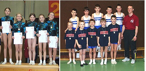 Gute Erfolge bei den Wintermannschaftskämpfen Links die D Schülerinnen: Isabell Seibert, Sandra Hofmann, Fiona Nohe, Anna-Lena Kappes, Tamina Dengel, rechts hinten die D Schüler: Lucas Brenneis, Fabio Broghammer, Dominik Köhler, Lars Springer, Tino Broghammer und rechts vorne die E- Schüler: Lasse Nohe, Nikolai Wollkopf, Bastian Richter, Lukas Jaeger, Johannes Blaumann und Trainer Janek Lange (v.l.) (Fotos: privat/Richter)