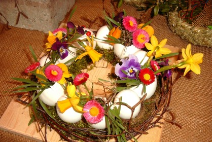 Neben dem zentralen Thema Osterei sind in der Ausstellung auch andere österliche Kunsttechniken, darunter handgegossene Schokoladen-Osterhasen, Holzarbeiten, Handarbeiten und Fensterbilder zu bestaunen. Kinder können in der Malecke ihr Können als Osterkünstler zeigen. Als Models für ihre Kunstwerke haben sich echte Osterhäschen und Hennen mit ihrem Küken-Nachwuchs angesagt. Und an das leibliche Wohl der großen und kleinen Besucher haben die Organisatoren ebenfalls gedacht.