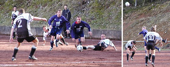 Rockenau nach Winterpause wieder in Erfolgsspur (Fotos:Claussen)(jc) (cum) Mit einem 2:0-Arbeitssieg über Blau-Weiß Neckargemünd meldete sich heute die SG Rockenau aus der Winterpause zurück und behauptet sich in der Spitzengruppe. Mario Wäsch per Kopf und Ismet Kastrati per Strafstoß erzielten die Treffer in einem ansonsten an Höhepunkten armen Spiel.