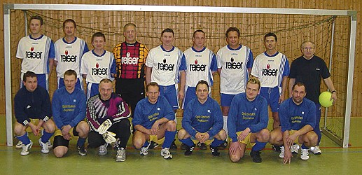 SpVgg Neckarsteinach gewann Turnier in Hirschhorn Das Foto zeigt die Endspielteilnehmer (in der vorderen Reihe: die Mannschaft von der SpVgg Neckarsteinach). (Foto: privat)(bro) (ka) Beim AH-Hallenturnier in Hirschhorn am 13. März meldeten sich diesmal zwölf Mannschaften an, sodass sich die Einheimischen schonen konnten. Zum erstenmal wurde auf größere Tore (D-Jugend) gespielt, damit noch mehr Treffer fallen. In der Gruppe 1 erreichten der VfL Heiligkreuzsteinach und der TSV Gauangelloch das Halbfinale. Der VfB Eberbach und die SpVgg Neckarsteinach konnten sich in der 2. Gruppe durchsetzen. Das erste Halbfinalspiel gewann der VfB Eberbach im 7m-Schießen gegen den VfL Heiligkreuzsteinach. Neckarsteinach konnte sich im 2. Spiel gegen den TSV Gauangelloch mit 2:1 durchsetzen. Im Spiel um Platz 3 mobilisierte Gauangelloch noch mal alle Kräfte und siegte mit 2:0. Im Endspiel ließ Neckarsteinach dem VfB Eberbach nur wenig Chancen und gewann mit 3:1 völlig verdient das Hallenturnier in Hirschhorn.