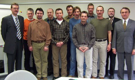 (jc) (rps) Neun Mitarbeiter der R.P.Scherer GmbH & Co. KG haben nach drei Jahren berufsbegeleitendem Unterricht in den firmeneigenen Räumlichkeiten ihren Abschluss zum Betriebsmeister IHK erreicht. Ein eigens von R.P.Scherer konzipiertes Weiterbildungsprojekt führte in Kooperation mit der IHK Rhein-Neckar zu einem Bildungsangebot besonderer Art - eine Meisterqualifikation maßgeschneidert auf die betriebsspezifischen Bedürfnisse. So kamen auch 10 der insgesamt 13 Referenten aus den unterschiedlichen Fach- und Führungsbereichen des Hauses Scherer. Seit Beginn der Meisterkurse im Oktober 2000 konnten inzwischen sechs der Kursteilnehmer eine Schichtführer- oder Stellvertreterposition übernehmen. Im Rahmen einer kleinen Feier wurden die Zeugnisse und IHK-Zertifikate an die Mitarbeiter übergeben.