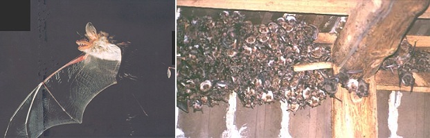 Fledermäuse erwachen nach den energiezehrenden Wintermonaten geschwächt - NABU gibt Tipps Das Große Mausohr im Flug und rechts eine Mausohr-Wochenstube. Für Ausflugsbeobachtungen sucht der NABU ständig Helfer/innen sowie leihweise ein Nachtsichtgerät. (Foto:NABU)(tw) (db) Die steigenden Temperaturen und die duftende Frühlingsluft haben die Fledermäuse aus ihrem Winterschlaf geholt. Neben Zwergfledermäusen und Abendseglern wurden in den letzten Tagen auch schon Große Mausohren bei abendlichen Ausflügen beobachtet. Das Große Mausohr, mit gut 40 Zentimeter Flügelspannweite unsere größte heimische Fledermausart. Über viele Generationen hinweg bewohnen die Traditionalisten großräumige, ungestörte Dachböden als warme Ersatzhöhlen in Kirchen, Schlössern oder anderen großen Gebäuden. Durch die gute Zusammenarbeit der Stadt Eberbach (Bauamt und Umweltschutzamt) mit der Koordinationsstelle für Fledermausschutz Nordbaden, in Karlsruhe, sowie mit der NABU-Gruppe Eberbach, kann ein traditionelles Mausohren – Sommerquartier trotz Umbaumaßnahmen wieder von den Nachtjägern bezogen werden. Die Lebensbedingungen haben sich in diesem Dachstuhl für die, aus dem Winterschlaf kommenden, Weibchen sogar deutlich verbessert. Nachdem über Jahre hinweg eine große Zahl von Tieren nur einen kleinen Teil des Dachraumes nutzten, konnte bei der alljährlichen Reinigung des Dachraumes vor kurzem festgestellt werden, dass der gesamte, große Dachraum von den Tieren genutzt wird. Die jetzt aus ihren Winterquartieren zurückkommenden, trächtigen Fledermausweibchen werden dort unter optimalen Bedingungen ihre Jungen zur Welt bringen und aufziehen können. Die Geburt der Jungen etwa Anfang Juni wird, wie übrigens bei allen Fledermausarten, zum Trapezakt. Kurz vor der Geburt sucht sich das betreffende Weibchen einen etwas abgelegenen Platz mit dem Kopf nach oben. Ohne die Geborgenheit eines Nestes gleitet das neugeborene Mausohr sanft in die Schwanzflughaut der Mutter. Gesichert sind sie nur durch die Nabelschnur. Das Neugeborene krabbelt sofort am Bauchfell der Mutter hoch in Richtung der Zitzen. Dabei wird es von der Mutter eifrig beleckt und die Mutter kehrt in die Hanggemeinschaft zurück, um sich normal, nämlich mit dem Kopf nach unten, aufzuhängen. Während des nächtlichen Jagdfluges bleiben die Jungtiere im Quartier. Sie hängen unter Aufsicht mehrerer Weibchen eng beieinander, um sich gegenseitig zu wärmen. Zum Säugen kommen die jagenden Mütter regelmäßig wieder in das Quartier. Sie erkennen ihr Junges an individuellen Ruflauten und am Geruch aus der Vielzahl zurückgelassener kleiner Fledermäuse wieder. Die Jagdgebiete des Großen Mausohres sind vorzugsweise in alten Laubwaldbeständen, wo sie dicht über dem Erdboden nach flugunfähigen Laufkäfern jagen. Diese Beutetiere erhören sie am Rascheln im Laub und fangen sie dann zu "Fuß". Laufkäfer bilden das Grundnahrungsmittel für Mausohren zu dem sich dann das jeweilige Insektenangebot der Saison gesellt. Trotz solch positiv verlaufender Bemühungen um den Erhalt von bekannten, traditionellen Wochenstuben – Quartieren sind leider viele der 23 in Deutschland vorkommenden Fledermausarten akut vom Aussterben bedroht.
