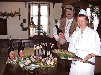 Bärlauchduft liegt in der Luft Martina und Jürgen Klier mit ihren Bärlauch-Maultaschen und dem Bärlauch-Bockbier, das sie in ihrer Pleutersbacher Weinstube ausschenken. (Foto:C.Richter)(hr) (cr) Jetzt ist es wieder soweit: Nicht nur frühlingshafte Temperaturen sorgen in Eberbach für eine gute Atmosphäre - nein, es liegt an der Bärlauchluft. Morgen um 15 Uhr ist es dann offiziell: Die Eberbacher Bärlauchtage 2004 werden im Rathaus der Stadt Eberbach eröffnet. Rolf Wieprecht wird durch das Programm führen, der Naturheilkundler Horst Ludwig wird zum Thema "Bärlauch in der Heilkunde" referieren und für die musikalische Umrahmung werden die Eberbacher Jagdhornbläser sorgen. Die Bevölkerung ist zum Eröffnungsspektakel eingeladen.