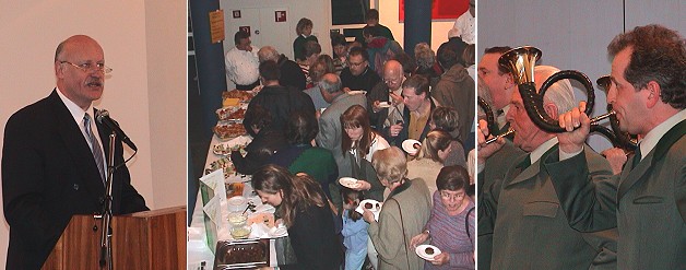 Im Anschluss des Kurzreferats forderte Rolf Wieprecht alle Gäste auf, Köstlichkeiten von der längsten Bärlauchtheke der Welt zu probieren. 20 Aktive der Eberbacher Bärlauch-Betriebe stellten eine Vielfalt von kulinarischen Kostproben zusammen. Zum Abschluss bliesen die Jagdhornbläser zum Essen.