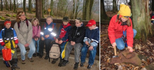 Aktion der NAJU Kindergruppe - Geologische Besonderheiten am Breitenstein Die kleinen Geologen der NAJU. (Foto: privat)(tw) (uk) Vergangenen Samstag traf sich die NAJU Kindergruppe am Breitenstein. Auf den Spuren des alten Neckarlaufes – der Neckar floss hier vor ca. 4 Mio. Jahren 170 m über dem heutigen Neckarniveau – bestiegen die Kinder den Schollerbuckel. Hier wurden die Gesteine mit Hammer bearbeitet und genauer unter die Lupe genommen. Zum Abschluss wurde noch eine 1 Meter tiefe Bodenbohrung durchgeführt, die Aufschluss über die lehmigen Bodenverhältnisse gab. Selbstgebastelte Modelle des ehemaligen Umlaufberges rundeten das Programm ab.