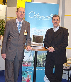 Werbewirksamer Auftritt in Berlin Das Foto zeigt Hubert Falkenberger mit Wirtschaftsminister Walter Döring. (v.l.) (Foto: TGO) (bro) Auch in diesem Jahr präsentierte sich die Touristikgemeinschaft Odenwald (TGO) wieder einem breiten Publikum auf der Internationalen Tourismusbörse in Berlin. Das vorrangige Ziel, Veranstalter von Gruppenreisen aller Art und Reisejournalisten anzusprechen, wurde mit einer Vielzahl von Kontakten erreicht. "Jetzt geht es darum diese Kontakte auszubauen", so TGO-Geschäftsführer Hubert Falkenberger. Landrat und Vorsitzender der TGO Detlef Piepenburg konnte auch dieses Jahr wieder mit Neuigkeiten aufwarten. So wurde der druckfrische Radwanderatlas Odenwald mit zahlreichen Beschreibungen und reizvollen Tourenvorschlägen aus dem gesamten Odenwald vorgestellt. Großes Interesse bei Busveranstaltern fand die Darstellung des Busgruppenkatalogs im Internet. Damit können Veranstalter auf sehr komfortable Art über zahlreiche Verlinkungen auf Ausflugsziele und Hotels Touren planen. Geschäftsführer Hubert Falkenberger: "Berlin ist und bleibt die Plattform, um auch mit ausländischen Partnern in Kontakt zu kommen. Von besonderer Bedeutung für die TGO ist die bereits begonnene Arbeit auf dem Schweizer und niederländischen Markt." Wenn demnächst in in- und ausländischen Reisemagazinen TGO-Themen auftauchen, so ist das mit auf den werbewirksamen Auftritt der Touristikgemeinschaft Odenwald in Berlin zurückzuführen.
