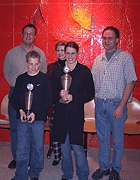 Judith Bohnert und Philipp Sigmund gewannen den Schwimmdreikampf Das Foto zeigt die 3-Kampfsieger: Philipp Sigmund und Judith Bohnert mit Roland Garhöfer,