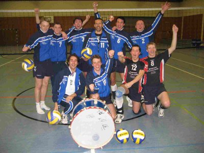 Verloren und doch gewonnen - Volleyballer bleiben in Oberliga (Foto:privat)(jc) (kk) Ohne Jörg Mechler, Jochen Schmitt und Stephan Andres trat der TV Eberbach zu seinem letzten Rundenspiel in der Volleyball-Oberliga gegen die TSG Rohrbach an. Da die Ittertalhalle bereits belegt war, wurde das Spiel in Höpfingen ausgetragen. Dennoch fanden viele Fans der Eberbacher Mannschaft den Weg dorthin und unterstützen diese lautstark.