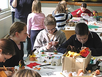 Spaß und großer Eifer in der österlichen Bastelwerkstatt (Foto: privat)(bro) (bs) Wie jedes Jahr fand am Karsamstag von 10 bis 12 Uhr in der Unterkirche von St. Josef eine Osterbastelwerkstatt für Kinder und Jugendliche statt. Betreut vom Jugendaktionskreis der katholischen Kirchengemeinden in Eberbach konnte Österliches gebacken, gebastelt und ausgesägt werden. Mehr als 50 kleine und große Besucher waren mit Eifer und Spaß dabei und konnten tolle Werke mit nach Hause nehmen.