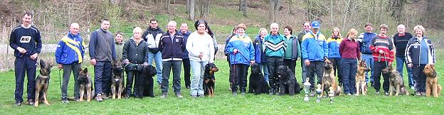 Morgens um 7.30 Uhr begann die Prüfung mit dem ersten Teil, der Fährtenarbeit. Die Hunde mussten dabei eine vom Fährtenleger vorbereitete Spur ausarbeiten und die darauf befindlichen Gegenstände verweisen. Die Gegenstände symbolisierten verlorengegangene Geldbeutel oder Schlüsselmäppchen. Alle Hunde waren von Ihren Hundeführern ausgezeichnet auf diese Aufgabe vorbereitet worden, wie die Ergebnisse zeigten. Drei mal konnte der Leistungsrichter die Bestnote von 100 Punkten vergeben. Werner Haag aus der Schweiz mit "Apoll von der Abendweid", einem Malinois (Belgischer Schäferhund), Christian Sauer aus Reichelsheim mit "Kejko von Karthago", einem Schäferhund-Rüden und Torsten Meier aus Rimbach mit "Brenda vom Wolfsblick" einer Hündin ebenfalls Deutscher Schäferhund überzeugten mit Spitzenleistungen. Danach stand die zweite Abteilung, die Unterordnung auf dem Programm. Entsprechend der zu erlangenden Prüfungsstufe waren genau vorgeschriebene Übungen vorzuführen. Auch in dieser Sparte waren die Hunde sehr gut vorbereitet worden. Die höchste Punkzahl konnte wieder der Malinois-Rüde "Apoll von der Abendweid" erringen. Werner Haag erreichte mit Ihm 94 Punkte. Ein Schäferhund war für die Begleithund– Prüfung gemeldet. Dies ist die erste Prüfung, die absolviert werden muss, um dann an einer Schutzhund- Prüfung teilzunehmen. Hervorragend vorbereitet hatte sich auch Jessica Mackey, mit 15 Jahren die jüngste Teilnehmerin. Sie hat ihren Rottweiler-Mischling Ayk selbst ausgebildet und konnte erfolgreich die Schutzhund-Prüfung 3 ablegen. Als 3. Teil der Schutzhunde- Prüfung kam nun der Schutzdienst an die Reihe. Im Schutzdienst war wiederum "Apoll" vorgeführt von Werner Haag nicht zu schlagen. Das Team bekam nochmals 100 Punkte. Somit stand auch der mehr als verdiente Tages-Sieger mit 294 Punkten fest. Auf dem 2. Platz landeten Torsten Maier mit "Brenda" mit 290 Punkten und den 3. Platz erreichte Eugen Geissner mit "Nora vom Bründelweg" mit 286 Punkten. Abgerundet wurde die Veranstaltung mit einem gemeinsamen Mittagessen und der Siegerehrung mit der Übergabe der Pokale.