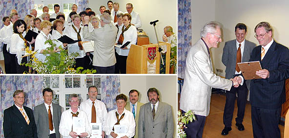 Bei den Ehrungen wurden zuerst Hiltrud Teimel und Lieselotte Bayer für 50 Jahre aktive Mitgliedschaft vom Vorsitzenden des Sängerbezirkes IV, Gerald Ernst, und seinem Stellvertreter Wolfgang Haag mit der Goldenen Ehrennadel des Deutschen Sängerbundes geehrt. Edgar Lenz wurde für 25-jährige Sangestätigkeit die Silberne Ehrennadel des Badischen Sängerbundes verliehen. Vereinsintern gab es noch Auszeichnungen für Gisela Stoeßer, Wolfgang Stoeßer, Heinz-Dieter Ihrig und Edmund Lenz, die dem Gemischten Chor seit 10 Jahren angehören.
