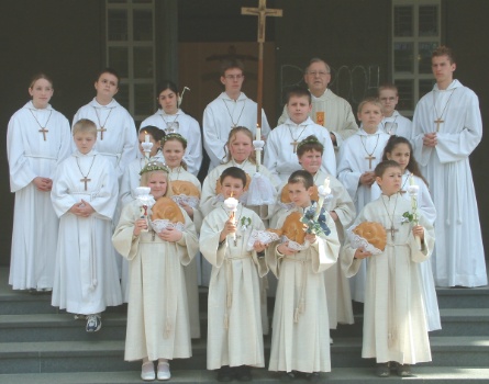 Der Weiße Sonntag ist nach katholischem Verständnis ein Tag der Freundschaft und der Vereinigung mit Jesus im Sakrament der Eucharistie. Seit Herbst letzen Jahres wurden die Eberbacher Kinder auf diesen Tag bestens vorbereitet. Durch vielfältige Aktivitäten wie beim Krippenspiel am Heiligen Abend, beim Sternsingen, in der Prozession an Palmsonntag und nicht zuletzt durch die Mitgestaltung der Osternachtsfeier brachten sich die Kinder in das Gemeindeleben ein. Der gemeinsame Weg der Pfarrgemeinden mit Kindern und Eltern soll aber nicht mit der Erstkommunion zu Ende sein. In zahlreichen Projektangeboten und in der gemeinsamen Feier des Sonntagsgottesdienstes soll der Weg fortgesetzt werden.