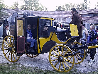 Die Schwarzacher Freilichtbühne präsentiert das Wirtshaus im Spessart Mit der Kutsche treffen die Reisenden in der Spielstätte "Birkenhof" ein, um im dortigen "Wirtshaus zum Spessart" einzukehren. (Foto: privat)(bro) Ab dem 26. Mai startet in der Schwarzacher Freilichtbühne "Theater im Birkenhof" die neue Spielzeit mit der Räuberkomödie "Das Wirtshaus im Spessart" frei nach Wilhelm Hauff. Das Schwarzacher Ensemble präsentiert eine Bühnenfassung nach Bernd Kolarik. Neben spritzigem Humor, zeichnet sich seine Komödie durch den Bezug zu sozialhistorischen Komponenten aus, natürlich kommt auch hier die Musik nicht zu kurz. Besonders erfreulich kennzeichnet der Regisseur und Künstlerische Leiter des "Theater im Birkenhof" Alexander Kaffenberger die Beteiligung vieler neuer Gesichter in dem mittlerweile auf 30 Personen angewachsenen Ensembles. Die Zuschauertribüne musste in diesem Jahr eigens für das Bühnenbild von "Das Wirtshaus im Spessart" verändert werden. Entgegen den Vorjahren mit zwölf Stuhlreihen mit jeweils 31 Plätzen gibt es in dieser Spielzeit erstmals insgesamt 17 Stuhlreihen mit jeweils 19 Sitzplätzen pro Reihe. Die Premiere von "Das Wirtshaus im Spessart" in der Schwarzacher Freilichtbühne ist am Mittwoch, 26. Mai. Weitere Aufführungen sind am Donnerstag, 27. Mai, Freitag, 28. Mai, Samstag, 29. Mai, Montag, 31. Mai sowie am Dienstag, 1. Juni, Mittwoch 2. Juni, Freitag, 4. Juni, Samstag, 5. Juni und Mittwoch, 9. Juni 2004. Beginn ist jeweils um 20 Uhr. Der Einlass ist ab 19.30 Uhr.