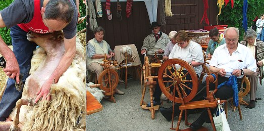 Der Wildparkförderverein hatte zum "Schaf- und Wolltag 2004" eingeladen. Ein professioneller Schafscherer ging den Schafen des Wildparks unter den Augen der zahlreichen Besucher an die Wolle, die dann vom Spinnzirkel direkt weiter verarbeitet wurde.