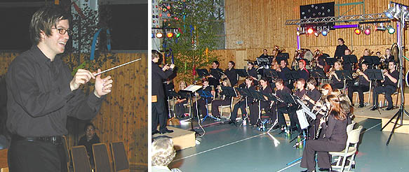Nach der Pause startete man mit der Einmarschhymne "Conquest of Paradise" des ehemaligen Boxweltmeisters Henry Maske, welche aus der Feder von Vangelis stammt. Weiter ging es dann mit zwei Stücken der ruhigeren Art. Zuerst gab es das gefühlvolle und träumerische "Imagine" von John Lennon zu hören, dann folgte "The Power of Love", mit dem Jennifer Rush einen Erfolg in den Charts hatte und das auch von Celine Dion wieder entdeckt wurde. Einem der bekanntesten Musikimporte Schwedens galt dann das nächste Medley, mit dem das Jugendblasorchester Waldbrunn während seiner musikalischen Reise durch vier Jahrzehnte wieder in den 70er Jahren angelangte. "Dancing Queen", "Mama Mia", "Fernando", "The Winner takes it all", "Gimme Gimme" und "Money Money" bildeten einen kleinen Querschnitt des Schaffens von "ABBA", der Pop-Band, die innerhalb von knapp zehn Jahren über 180 Mio. Platten verkauften. Einen Riesenhit von Billy Joel gab es dann zu hören. In "Leningrad" beschrieb Joel die Lebensumstände des Kriegswaisen Victor, der in den letzten Kriegsjahren der Stadt geboren wurde und seinen Lebensinhalt darin fand, den Kindern der nachfolgenden Generationen als Clown das Lachen und die Freude zu vermitteln, die er als Kind in den Nachkriegsjahren selbst vermisst hatte. Als letzte Station auf der Reise in die musikalische Vergangenheit machte man mit "Flower Power" einen Abstecher in die Zeit der Hippies. "Bridge over Troubled Water" von Paul Simon, "Monday Monday" und "San Francisco" von John Phillips sowie "Morning has Broken" und "It never Rains in Southern California" setzten den zumindest offiziellen Schlusspunkt des Frühlingskonzertes des Jugendblasorchesters Waldbrunn, welches einmal wieder auf der ganzen Linie überzeugen konnte. Stürmischer Beifall und die in Waldbrunn schon obligatorischen Rufe nach Zugaben ließen die jungen Musikerinnen und Musiker mit ihrem Dirigenten Peter Schäfer nicht zur Ruhe kommen. Doch nach drei Zugaben hatte das Jugendblasorchester Waldbrunn schließlich den endgültigen Schlusspunkt der musikalischen Reise durch vier Jahrzehnte Musikgeschichte erreicht.