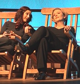 Hildegard Knef wurde wieder lebendig Cornelia Heilmann und Evelyn Nagel (v.l.). (Foto:C.Richter)(ak) Nur etwa 100 Zuschauer besuchten gestern Abend die von der Badischen Landesbühne in der Stadthalle aufgeführte Hildegard-Knef-Revue. Veranstaltet wurde das Mini-Musical mit zwei Darstellerinnen und zwei Musikern vom Kulturamt Eberbach, die Inszenierung ist von Carsten Ramm. Die gereifte Hildegard Knef, gespielt von Evelyn Nagel, trifft ihr junges Ich Hilde, dargestellt von Cornelia Heilmann. Gemeinsam spannen sie den Bogen von den Anfängen der Karriere der Knef durch ihr Leben bis hin zu dessen Ende. Mal nachdenklich, mal sehr berührend, dann wieder spritzig-frech tanzen, singen und sprechen beide im Dialog Lieder der Knef und viele Zitate aus ihrem Leben und ihren Büchern. Evelyn Nagel und besonders Cornelia Heilmann mit ihrer leicht brüchigen Stimme ließen Hildegard Knef auf der Bühne wieder wunderbar lebendig werden. Einfühlsam musikalisch begleitet wurden sie dabei von Hennes Holz an der Gitarre und Mario Fadani an Kontrabass und Tuba.