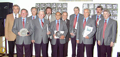 Nach den Ehrungen der Chorleiter konnten auch Ehrungen durch den Sängerbezirk IV, Eberbach vorgenommen werden. Zuerst wurde durch den 1. Vorsitzenden Gerald Ernst und Kassenwart Wolfgang Keller die Goldene Ehrennadel des Deutschen Sängerbundes an Adolf Helm verliehen. Verbunden mit dieser Ehrung war auch die Übergabe des Ehrenausweises des Deutschen Sängerbundes, welcher zum unentgeltlichen eintritt sämtlicher Veranstaltungen des Deutschen Sängerbundes berechtigt. Für 40jährige Sängertreue wurde Karl Geistlinger mit der Goldenen Ehrennadel des Badischen Sängerbundes ausgezeichnet. Mit der Silbernen Ehrennadel des Badischen Sängerbundes wurden dann noch Ulrich Heisner, Harald Mohr und Heinz Tischler für 25jährige Sängertätigkeit geehrt. Seitens des Vereines die Geehrten auch noch mit einem Ehrenteller mit eingravierten Jahreszahl ausgezeichnet.