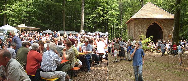 Kirchel war wieder Vatertags-Magnet (Fotos:Maier)(hr) Zu Hunderten strömten die Besucher gestern an Christi Himmelfahrt wieder zum beliebten Waldfest am Kirchel zwischen Eberbach und Schwanheim, das der Männergesangverein Concordia Neckarwimmersbach in bewährter Manier ausrichtete. Viele kamen bei optimalem Wanderwetter zu Fuß, um sich dann mit Getränken und deftigen Speisen zu stärken.