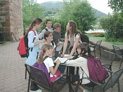 Herzlicher Empfang für die französischen Gäste Bei der Stadtrallye erkunden die französischen Schüler, versehenen mit Stift und Fragebogen, Eberbachs historische Viertel. (Foto:privat)(tw) (stve) Noch voller Eindrücke sind vergangenen Montag 15 Schülerinnen und Schüler des Hohenstaufen-Gymnasiums von einem einwöchigen Besuch in Eberbachs französischer Partnerstadt Thonon am Genfer See zurückgekehrt und haben ihre Austauschschüler gleich an den Neckar mitgebracht. Beim traditionellen Willkommen der französischen Gäste im Rathaus warf Bürgermeister Bernhard Martin vor dem Hintergrund der gerade zwei Tage zurück liegenden Europa-Wahl auch einen historischen Blick auf die Anfänge der Städtepartnerschaft vor 43 Jahren. Schon 1961 und damit noch vor dem deutsch-französischen Freundschaftsvertrag von 1963 erfolgten bereits die ersten offiziellen Besuche. Somit sei die Freundschaft zwischen Thonon und Eberbach mit die älteste deutsch-französische Städtepartnerschaft überhaupt, wie Martin betonte. Regelmäßige gegenseitige Besuche von Schulklassen gibt es seit 1974, wobei die offiziellen Beziehungen nur den Rahmen bildeten, den seither Generationen von Schülerinnen und Schülern, Lehrkräften und Gasteltern mit Leben gefüllt hätten. Ihnen allen galt Martins Dank. Die 13- bis 14-jährigen SchülerInnen forderte Martin auf, sich kennen zu lernen und sowohl auf die Gemeinsamkeiten als auch auf die Unterschiede neugierig zu sein.