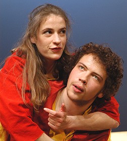 Freilicht-Kindertheater der Badischen Landesbühne Sabine Flack und Till Beyerbach. (Foto:Empl)(hr) Astrid Lindgrens "Ronja Räubertochter" eröffnet am Freitag, 2.Juli, um 17 Uhr den Freilicht-Theater-Tag der Badischen Landesbühne in Eberbach. Das Stück ist ein Theaterspaß für Leute ab sechs Jahren. Ronja kommt als Tochter des Räuberhauptmanns Mattis auf einer alten Burg inmitten unendlicher Wälder zur Welt. Während ihrer Geburt umkreisen Wilddruden die Burg und ein Blitz spaltet das Bauwerk von den Zinnen bis zu den Kellergewölben in zwei Teile.