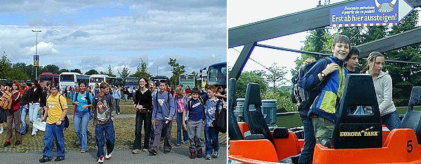 Spaß und Action im Europa-Park (Fotos: privat)(bro) (ng) Am 26. Juni und am 3. Juli fuhren insgesamt 420 Jugendliche mit dem Sparkassen Club der Sparkasse Neckartal-Odenwald in den Europa-Park. Gut gelaunt ging es in den führen Morgenstunden mit insgesamt neun Bussen Richtung Rust. Das Wetter war an beiden Tagen super, sodass der Andrang an den einzelnen Fahrgeschäften groß war. Auf dem Weg durch den Park erwartete die Jugendlichen jede Menge Spaß und Action. Besonders begeistert waren die meisten von den Achterbahnen Euro-Sat, Euro-Mir und Poseidon. Die ganz unerschrockenen wagten sich sogar in die Silverstar und berichteten anschließend von einer super aufregenden Fahrt. Die höchste Stelle der Silverstar ist 75 Meter und die Höchstgeschwindigkeit beträgt 130 km/h. Manche besuchten auch das 4 D Kino. Dies war ebenfalls ein spannendes Erlebnis, so konnte man z.B. hautnah miterleben, wie kalt und windig es am Nordpol ist, wie es sich anfühlt von einem Eisbären angenossen zu werden oder wie es ist, ca. ein Meter von einer riesigen Schlange entfernt zu sein. Zum Abschluss besuchten einige noch die Geisterbahn oder sahen sich eine der unzähligen Shows an. Um 17.20 Uhr trat man dann wieder vollzählig und immer noch mit Bauchkribbeln von den vielen Achterbahn fahren die Heimfahrt an. Es war ein sehr spannender Tag, der den S-Club Mitglieder bestimmt noch lange in guter Erinnerung bleiben wird.