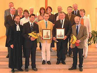 Dank für die Mitarbeit - Einführung nachgewählter Kirchengemeinderäte In der vorderen Reihe sind Pfarrer Ekkehard Leytz, Jens Haaß, Frank Endlich, Dr. Gerd Herminghaus, Dr. Reinhard Stupperich zu sehen(v.l.), dahinter stehen weitere Mitglieder des Kirchengemeinderates. (Foto:privat)(bro) (el) Verabschiedet wurden in einem Gottesdienst in der evangelischen Michaelskirche die beiden ausgeschiedenen Kirchengemeinderäte Dr. Gerd Herminghaus und Frank Endlich. Pfarrer Leytz bedankte sich bei Dr. Gerd Herminghaus, der insgesamt 21 Jahre, nämlich von 1970-77 und von 1990–2004 seinen Sachverstand in den Dienst der Kirchengemeinde stellte. Sein besonderes Interesse galt dabei der Ökumene und der Arbeit im Diakonie-Aussschuss.
