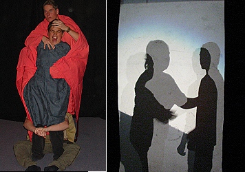 Theater zum Thema Sucht in Zusammenarbeit mit dem Fex-Theater (Fotos: privat)(bro) (uk) Seit April wurden bisher 17 Szenen rund um die Sucht entwickelt. Nun beginnen die Probenarbeiten an den Szenen, d.h. sie werden ausgewählt und konkretisiert. Die Schüler haben erfahren, dass man Mut braucht, um auf die Bühne zu gehen und es nicht leicht ist, seine eigene Hemmungen zu überwinden. Aber sie haben auch die Erfahrung gemacht, dass es möglich ist, seine eigenen Ängste zu überwinden und daraus Selbstbewusstsein zu beziehen. Das Besondere an dem Projekt ist zum einen, dass es über einen Zeitraum von ca. acht Monaten stattfindet. Zum anderen wird das Thema Sucht in die Klassen hineingetragen, indem sich die Schüler auch im Unterricht damit befassen und eine eigene Infowand über Drogen erstellt haben, die in der Schule ausgestellt wird. Das Projekt wird von weiteren Aktivitäten begleitet, z.B. ist eine Lese- und Theaternacht in der Schule geplant, bei der die Teilnehmer auch in der Schule übernachten werden. Das Projekt erfordert von allen Beteiligten ein großes Engagement. Hervorzuheben ist z.B. die Arbeit der Suchtbeauftragten Nicole Strämke, aber auch von den Theaterleuten und vor allem den Schülern, die sehr viel Freizeit in der Schule verbringen. Aus der Sicht der Theatermacher geht es bei der Suchtprävention immer um Menschen und deren Ängste und Sehnsüchte. Oder mit Worten von Erich Kästner ausgedrückt: "Mehr als das, was wir reden, wirkt das, was wir tun. Und mehr als das, was wir tun, wirkt wie wir sind."