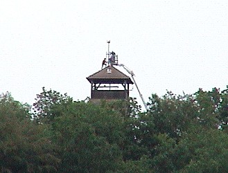 Mehr Funkanlagen auf dem Ohrsbergturm (Foto:Richter)(hr) Funktechniker stiegen in der vergangenen Woche dem Ohrsbergturm aufs Dach. Sie montierten dort eine neue Mobilfunk-Sendeeinrichtung des Anbieters "e-plus". Bereits bisher waren Funksendeanlagen auf der Turmspitze platziert, etwa für Rundfunk und für den Feuerwehrfunk.