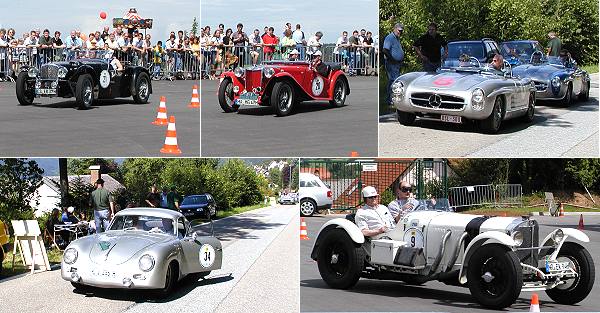 Heidelberg Historic mehrfach in Eberbach und Umgebung präsent Unsere Fotos zeigen Szenen bei der Firma Mosca in Waldbrunn und am Kontrollpunkt in der Schwanheimer Straße in Eberbach. (Fotos:Claussen)(jc) In ihrer zehnten Auflage führte heute die Strecke der Oldtimer- Rallye "Heidelberg Historic" von Sinsheim über Heilbronn, Bad Mergentheim, Mosbach, Waldbrunn und Eberbach zurück nach Sinsheim. Bei Wertungsprüfungen machten die rund 190 Oldtimer im Minutentakt unter anderem bei der Firma Mosca in Waldbrunn und an der Eberbacher Bergrennstrecke, wo der MSC Eberbach die Regie übernommen hatte, Station. Auf dem Firmengelände in Waldbrunn verfolgten hunderte von Zuschauer das Spektakel und wurden bei fachlicher Moderation mit den nötigen Einzelheiten zu den Teilnehmern versorgt. Auch entlang der offenen Strecke waren viele Oldtimerfreunde und Schaulustige postiert. Bereits am Freitag streifte die Rallye Eberbach, als die Anfahrt zur Wertungsprüfung am Krähberg über Gaimühle und Friedrichsdorf erfolgte.