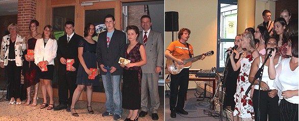 Der Klassenlehrerin Ute Klos und den Klassenlehrern Richard Wurm, Andreas Gatti und Udo Geilsdörfer überreichten die jeweiligen Klassen Präsente und ein Dankeschön dafür, dass kein Schüler durch die Prüfung gefallen ist, und das obwohl "wir nicht immer unseren inneren Schweinehund bekämpfen konnten" und "einige Schüler oft nur zur Dekoration anwesend waren".